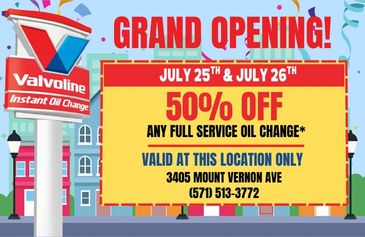 Join us Friday, July 25th and Saturday, July 26th for the Grand Opening of Valvoline Instant Oil Change at 3405 Mount Vernon Ave!